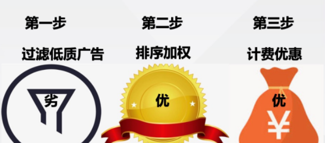 需要了解提升广告排序竞争力=质量度(落地页、预估点击率、创意质量)*出价。