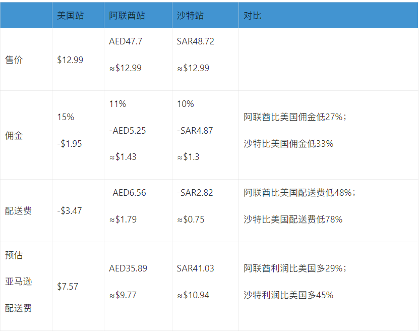 同一款产品,在成熟站点和新站点同时上架,中东站点普遍可以卖更高的价格,而佣金和配送成本远低于成熟站点,大大拉高了利润空间!